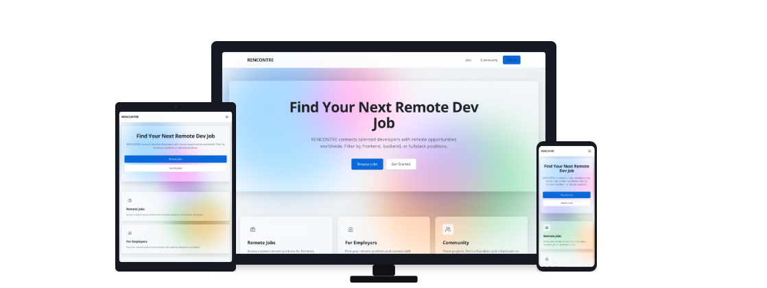 RENCONTRE is a modern platform designed to bring software engineers and developers together through meaningful, project-driven interaction. Built with a clean interface and a focus on real connection, RENCONTRE helps users discover collaborators, share ideas, and build software communities with ease.